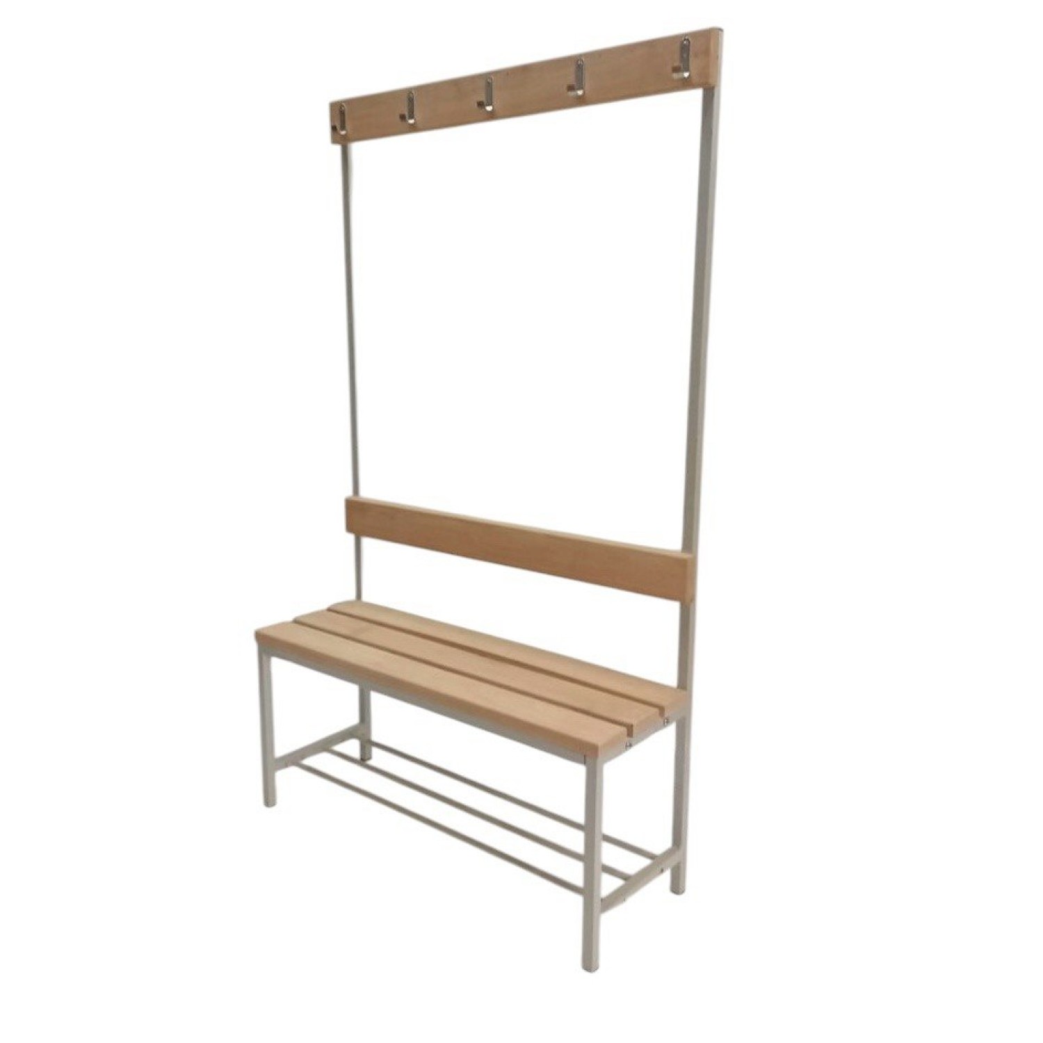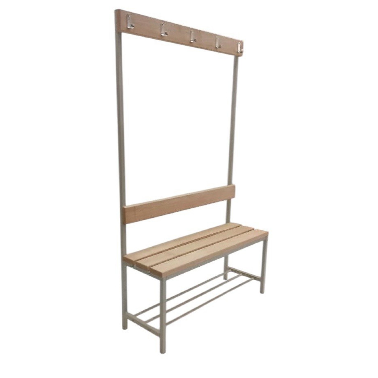 Каркас лави з вішалкою є розбірним, виготовлений із металевої труби квадратного перерізу 25×25 мм. Забарвлений стійкою до механічних пошкоджень, ультрафіолетового випромінювання та атмосферних впливів порошковою фарбою чорного (RAL 9005), сірого (RAL 7035) або салатового (RAL 6018) кольору. Під замовлення можна пофарбувати в будь-який інший колір за розкладкою RAL. Всі торці дошок відшліфовані та ретельно лаковані або пофарбовані, що не тільки приємно на дотик, але й безпечно під час експлуатації. За замовчуванням використовується дошка 95х28 мм. Переваги даної конструкції - міцність та надійність. Усі технологічні отвори закриті пластиковими заглушками.